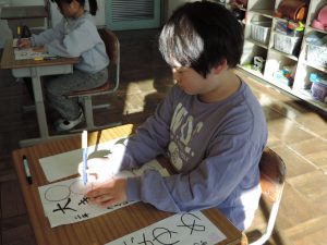 各クラスで、一文字、一文字丁寧に書く様子が見られました。
