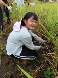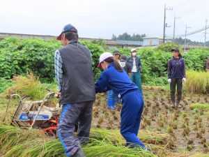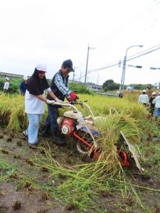 開始前に小ぶりになり、稲刈りするときには雨がやみ