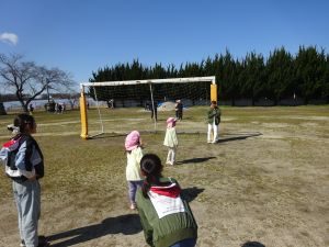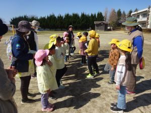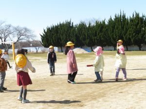 今日は、旭幼稚園の園児さんが遊びに来てくれました。 一年生や、他学年の児童と一緒に、鬼ごっこやジャングルジム、だるまさんが転んだ、ドッジビー、鉄棒、木の実拾い等を楽しみました。