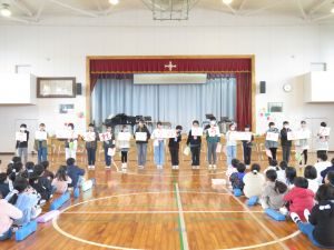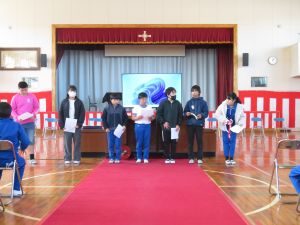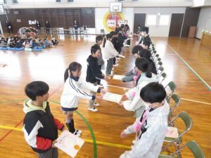昼休みに、委員会の活動報告会を行いました。 一年間、各委員会ごとに児童主体の活動を行ってきました。児童の活動のおかげで普段の学校生活が送れています。見えない所でも学校を支えてくれている児童の活躍に感謝しています(^o^) また、それに全校児童が協力をしてくれたため、すばらしい取組となりました。