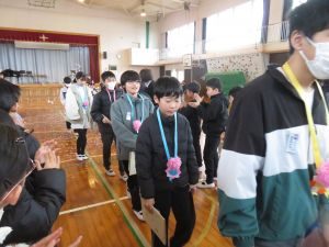 昼休みに、今年度3回目のたてわり安全点検を実施しました。 児童主体のたてわり安全点検や、児童自ら避難方法を考え実践する避難訓練、交通安全教室、体育委員会の児童の活動等により、今年度児童がけがをする件数が大幅に減少しました。 児童自らが危険について考え、対処する力が、少しずつ身についてきた成果と考えています。 新しい学校(環境)でも、今の意識を持ち続けてください。