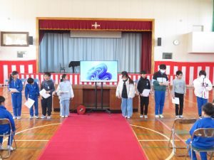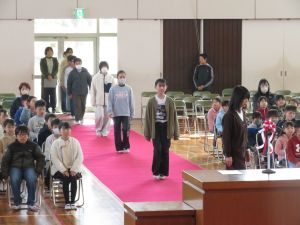 卒業式の予行練習を行いました。式の作法や歌、呼びかけ等を一通り確認しました。 児童は真剣に式にのぞみ、とてもすばらしい態度でした。当日、全員で卒業式を迎えましょう!