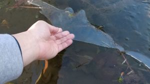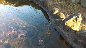 今日の掃除の時間,外掃除に向かう途中,池のところにさしかかった4年生のYさんが,「あ! 氷!」と言って氷に手を触れていました。あれは清掃が始まる13時15分頃のことでした。寒いとは思っていたものの,お昼を過ぎても氷が張っているとは!とちょっと驚いてしまいました。