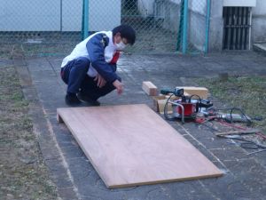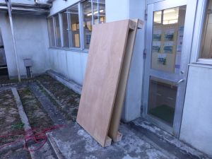 小雪の舞うまさにそのとき,校舎裏からなにやら音が聞こえてきます。増子係長が大工仕事をしている音でした。近々児童の前にお目見えすると思いますので,それまでなにが出来たのかはお楽しみです。