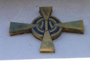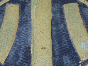 3 答えはこれです。何と言うのでしょうか,「校章」と言えばいいでしょうか。職員玄関に外から入るときに,上の方にくっついていますよね。夏の時期は,この近くにもカブトムシがずいぶん出現していました。