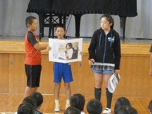 放送委員会からは,仕事の紹介や校内放送で流している音楽のイントロクイズ,代表委員会からは赤い羽根共同募金の協力について説明がありました。