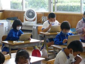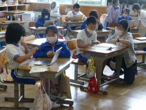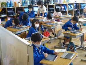 その他、2年生教室ではタブレット端末を用いて練習問題に取り組む様子が見られました。