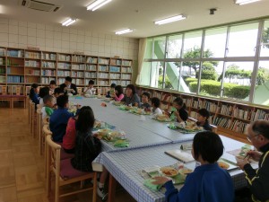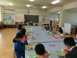 校長先生,岩城先生,和田係長さんと楽しく食べました