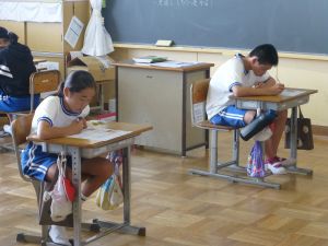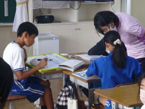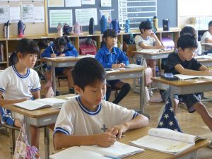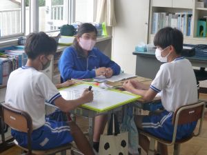 9/27 ダンス、そして授業スポフェスの練習は続いていますが、並行して授業も進めています。4年生と6年生は算数、5年生はテスト中のようです。6年生は、グループワークの時間です。一人一人の考えを持ち寄って、グループで問題解決に向かっています。