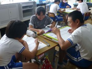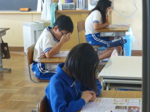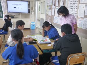 スポフェスの練習は続いていますが、並行して授業も進めています。4年生と6年生は算数、5年生はテスト中のようです。6年生は、グループワークの時間です。一人一人の考えを持ち寄って、グループで問題解決に向かっています。
