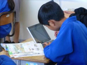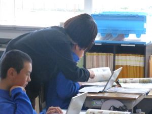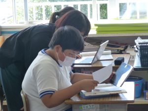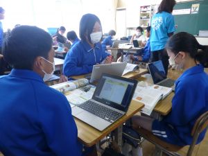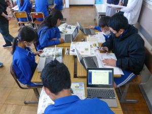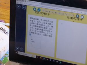 今日は、6年社会科の授業研究を行いました。日本を代表する戦国武将の1人・織田信長に着目し、彼の戦や政策について児童が点数をつけ、そしてその理由づけの中から織田信長の業績等について拾い上げ、まとめていました。6年社会科の授業中では、端末が普段使いされており、子どもたちは慣れた様子で学習を進めていました。また、グループ活動でも、信長の評価について活発に話し合い、その理由を各班が教科書等の資料をもとに拾い集めていました。