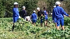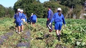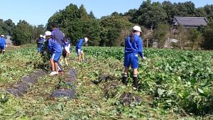 今日の練習の合間を縫って、6年生がさつまいも畑に行ってきました。これは、来週の17日(火)にいも掘りを行うにあたって、まずはその前に弦切りをということで出かけたものです。