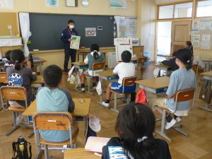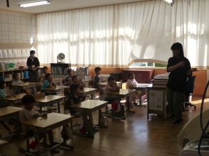 1・2年教室の様子です。それぞれ担任の先生がお話していたのですが、同じことについて話をしていました。それは「おもちゃランド」です。これは、例年2年生が、生活科の授業の中でおもちゃを作り、1年生を招待して一緒に遊ぶ催しです。2年生はこれからその準備を進め、1年生はこれから2年生に招待されて一緒に遊ぶとともに、来年は新しく入ってくる新1年生のためにおもちゃを作る順番が回ってきます。そんな楽しい催しが、近々行われることになっています。