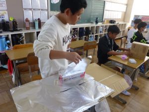 6年生も図工の時間でした。まだ完成品の全体像を見ることはできませんでしたが、どうやらきれいな作品が仕上がりそうな予感がします。端々にその一端を見ることができました。