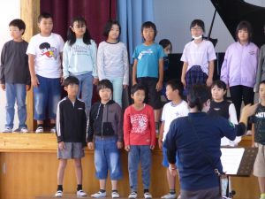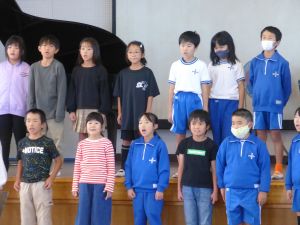 3・4年生は、市の音楽会で発表する合唱の練習中です。中学年らしく、子どもらしく伸びやかな歌声がとてもかわいいです。来週のふれあい学習でも披露するということで、一生懸命練習しているところでした。