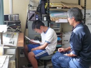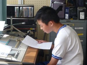 保健委員会の活動です。お昼の放送のときに、保健に関するクイズを出題していました。こうして感染症予防の啓発を行っています。今日の担当は5年生で、事前にしっかりと読みの練習をして、スムーズに放送することができました。