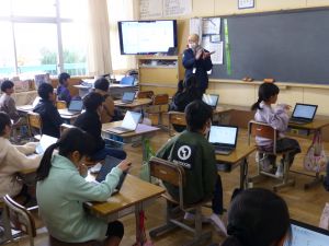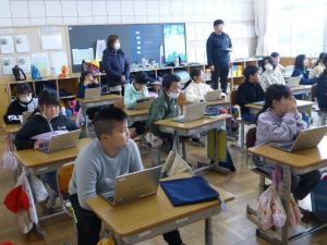 4校時、3年生が教育委員会の方からタイピングの指導を受けました。今後練習を続け、スムーズなタイピングの習得を目指すことで、今後の端末を活用した学習効率の向上につながることをねらいとしています。