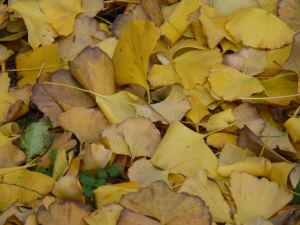 体育館の外は、黄色いいちょうの落ち葉でいっぱいでした。季節を感じさせる風景です。