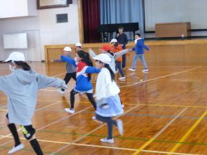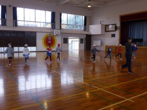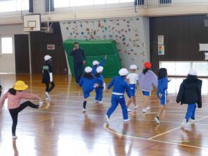 なお、本日より体力プロジェクトの取組が始まりました。昼休みに希望者を集めて、体力向上に向けた取組を始めています。初日の今日は、低学年を中心にたくさんの児童が集まり、養護教諭の指導を受けていました。今後しばらくの間、定期的に実施していく予定です。