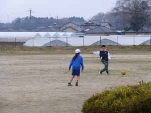外スポーツクラブは、6年生がジャングルジムのところに集まっています。これは卒業アルバム用の写真撮影のようです。ということで、4・5年生はボールを蹴りながら待っているところです。