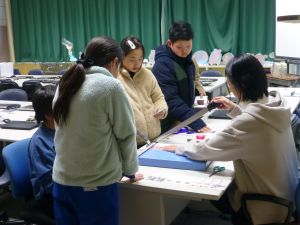 パソコンクラブは、見たところパソコンには関係ない作業をしているように見えますが、どうやらパソコンを使って作成したしおりを切り分ける仕上げの作業のようです。こうした自分で作ったものって、うれしいですよね。