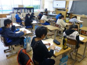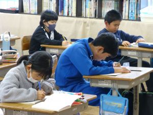 イラストクラブは、今日はいつもの図書室ではなくて、教室で行っています。それぞれが真剣にイラストに向き合っている様子が見られました。やっぱり教室だと、ぱっと見たところ勉強しているかのように見えますね。