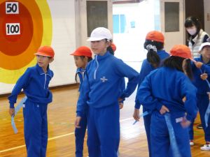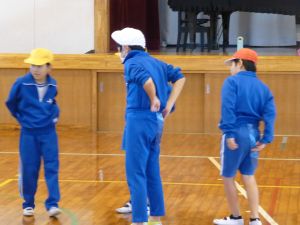 最後に屋内スポーツクラブ。6年生が写真を撮影している間に、4・5年生は今日の活動の準備中。お尻に何かをセットしていますが、おそらくこれは「しっぽ取り」ではないでしょうか。単純ではありますが、小学生は結構盛り上がりますよね。