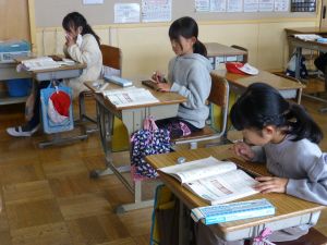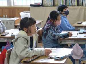 ①4年生算数は、そろばんの学習でした。普段手にすることのないそろばんに四苦八苦している児童もいましたが、そろばんの考え方は、計算力を高める上で大変有効です。単に「そろばん」というのではなく、計算する上でのコツを身に付けさせたいものです。