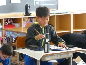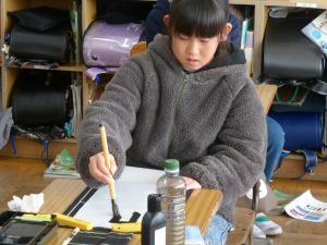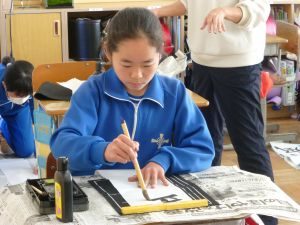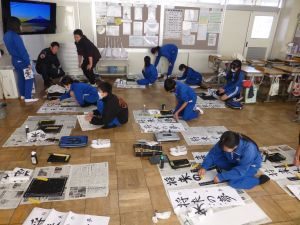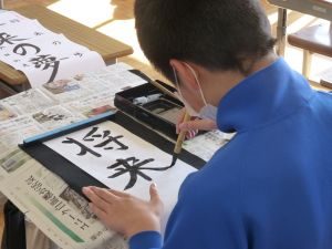 先日、1年生の書き初めについて紹介しましたが、本日4校時には4~6年生が書き初めを行っていました。