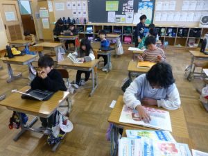 2/2 早いぞ2年生!朝のぐんぐんタイム、または読書タイムは、毎朝8:10に始まります。 以下は今朝の2年教室の様子です。