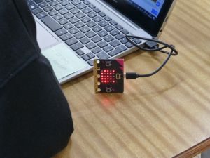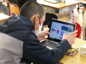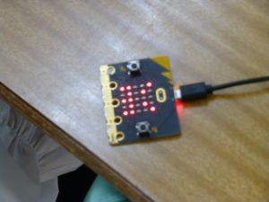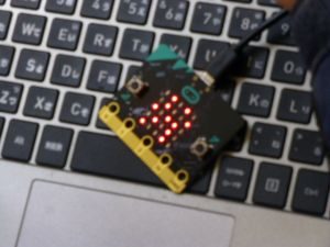 6年生がマイクロビットを体験しました。プログラムを組むことで、自由自在に光を表示させることができることの装置を使った活動に、子どもたちは夢中になって取り組んでいました。とても「今らしい」学習活動だなと感じました。