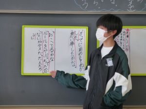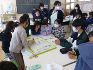 他校からお客様をお迎えしての全校道徳となった今回、昨日までの職員の準備も功を奏し、児童一人一人が本時のテーマに主体的に向き合い、活発な話合いや発表、振り返り等のアウトプットを見ることができました。異学年集団での「考え、議論する道徳」が深まりを見せた今回となりました。