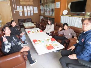 卒業生にとって、最後の思い出になるかもしれない校長室での給食の様子です。