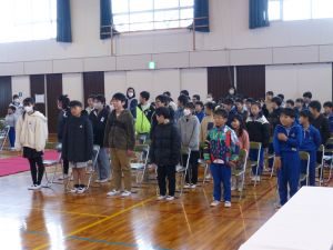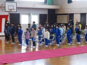 今日から、卒業式の全体練習が始まりました。ほぼ本番の雰囲気に近い中で練習はしっかりと進められていました。児童の頑張ろうとする意識が高く、例年になく早い仕上がりです。