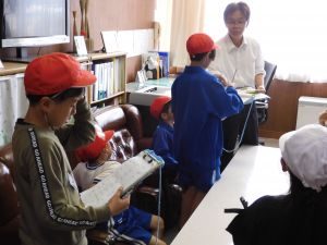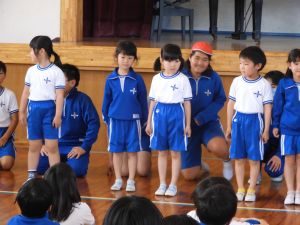 4月26日(金)「1年生を迎える会、校内ウォークラリー大会」1年生を迎える会では、上級生のお兄さん、お姉さんの前で1年生がニコニコ笑顔で元気に自分の名前と好きなものを発表することができました。また、縦割り班での校内ウォークラリー大会では、1年生から6年生が力を合わせて、チェックポイントにあるクイズを楽しみながら解いていました。