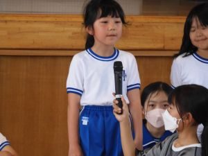 1年生を迎える会では、上級生のお兄さん、お姉さんの前で1年生がニコニコ笑顔で元気に自分の名前と好きなものを発表することができました。また、縦割り班での校内ウォークラリー大会では、1年生から6年生が力を合わせて、チェックポイントにあるクイズを楽しみながら解いていました。