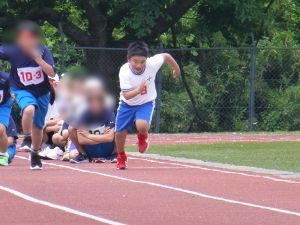 鉾田市小学校陸上記録会が実施され、旭西小児童が躍動しました。