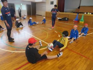 5・6年生が選手の皆さんと楽しく体を動かしたり、生活習慣の大切さを教えていただいたりしました。