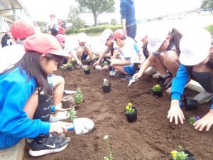 2年生は、ノースポールやビオラを優しく植えていました。これからお世話もがんばります。