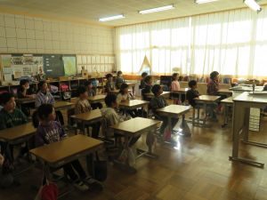 2学期のしめくくり、みんな良い姿勢で校長先生や担任の先生のお話を聞きました。
