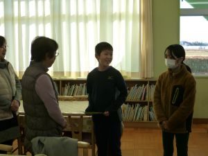 今年度最後の読み聞かせが行われました。終了後には、図書委員会の児童から、感謝の言葉とプレゼントが贈呈されました。改めまして「にじいろのさかなの会」のみなさん、今年度も児童のためにありがとうございました。