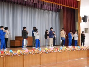各学年6年生に感謝の気持ちをこめて、歌やダンス、プレゼント贈呈など工夫をこらした発表ができました。6年生も大変喜んでくれました。学校評議員、保護者の皆様お忙しい中、ご参観いただきありがとうございました。