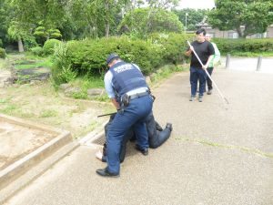 放課後は、教職員に対しての不審者対応の実技研修を受けました。さすまたの使い方や、腕などをつかまれたときの対処法等について研修を受けました。本日教わったことを、今後も日頃から確認していきます。