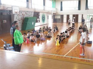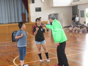 不審者の侵入後、児童は速やかに避難することができました。不審者確保後は、体育館で学校以外で不審者に出会った時の対処等について、ご講話と実技体験をしていただきました。様々なシチュエーションに対して、児童も深く考える良い機会となりました。その際、保健委員会の児童が運営を行いました。司会や開会、閉会の言葉、お礼のあいさつ等、とてもすばらしかったです。