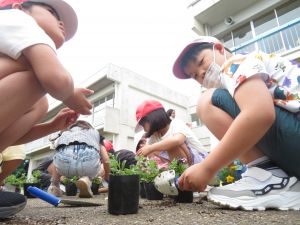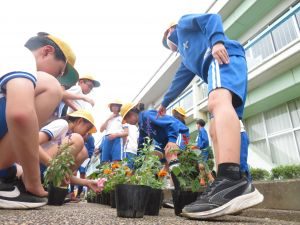 学年花壇の花植えを行いました。各学年、花の配置を考えながら植えていました。学校に立ち寄った際は、ぜひご覧ください。