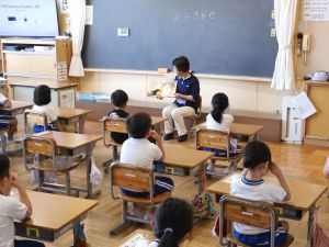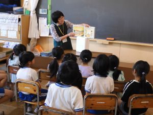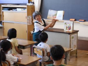 にじいろさかなの会や図書館ボランティアの方々のご協力をいただき、朝読書の時間に読み聞かせを行っていただきました。1∼3年生どの教室も、児童は夢中になって聞いている姿が見られました。