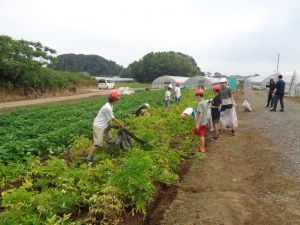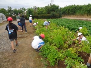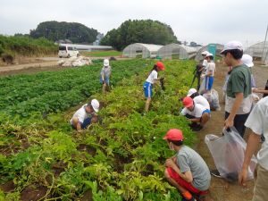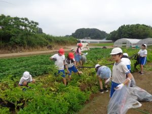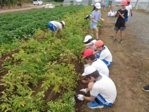 翌日のじゃがいも収穫に向けて、6年生が収穫前の準備として、マルチはがしを行いました。チームを組んで作業にあたり、1つのうねに対してマルチを左右から上手にはがし、はがしたマルチをゴミ袋に入れるまで流れるように行っていました。さすが最上級生です。大きなじゃがいもが土肌から見えて豊作の予感がします。収穫が楽しみです。