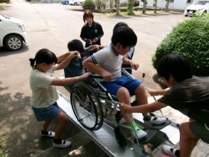 4年生は、総合的な学習の時間で「福祉」について学習しています。今日は鉾田市社会福祉協議会の方を講師に迎え、「車いす・アイマスク体験」をさせていただきました。体験では、グループやペアで声をかけ合い、相手を気遣う様子が多く見られました。体験を通して、高齢者や障害のある方の気持ちを知り、これからの自分ができることについて考えることができました。