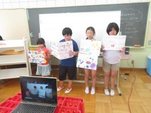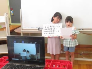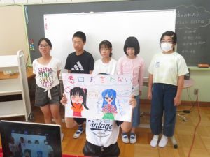 昼休みに、計画委員会主催で「いじめ防止フォーラム」を実施しました。熱中症予防のため、各教室をZoomでつないで、発表を共有しました。