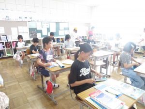 各教室では、宿題や多くの素敵な作品が提出されていました。今週は、夏休み明けの学校に慣れるため等の理由から早めの下校となっています。下校時刻のご確認をお願いいたします。